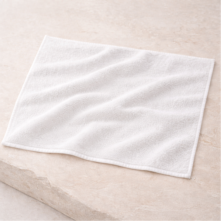 Das besonders feine, rein weiße Mikrofasertuch entfernt Make-up, Schmutz und überschüssigen Talg allein mit Wasser – ganz ohne aggressive Reinigungsprodukte.